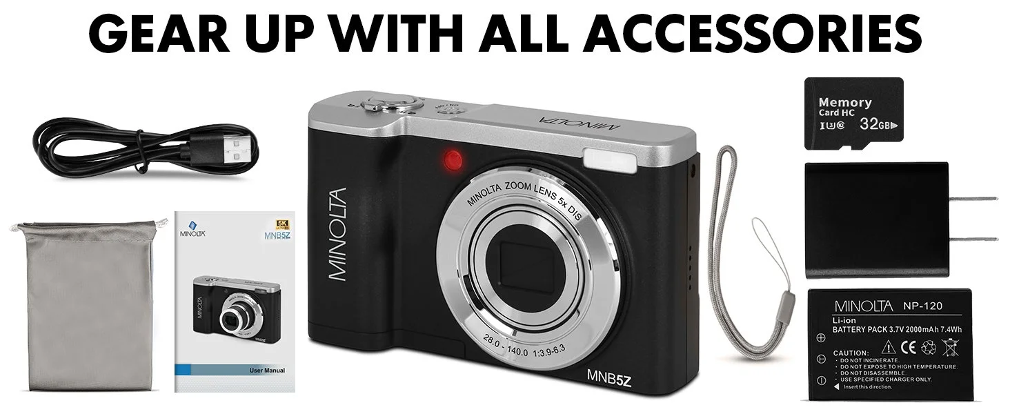 The MNB5Z is a compact powerhouse featuring impressive imaging capabilities in a pocket-friendly design. Capture life’s best moments with stunning 56-Megapixel and crisp 5K Ultra HD video. Its 5x optical zoom lens brings you closer to the action, making every detail count. The 2.8” touchscreen offers easy access to controls, while creative modes like Time Lapse, Slow Motion, Photo Burst, and built-in Color Filters let you transform every shot into a work of art.