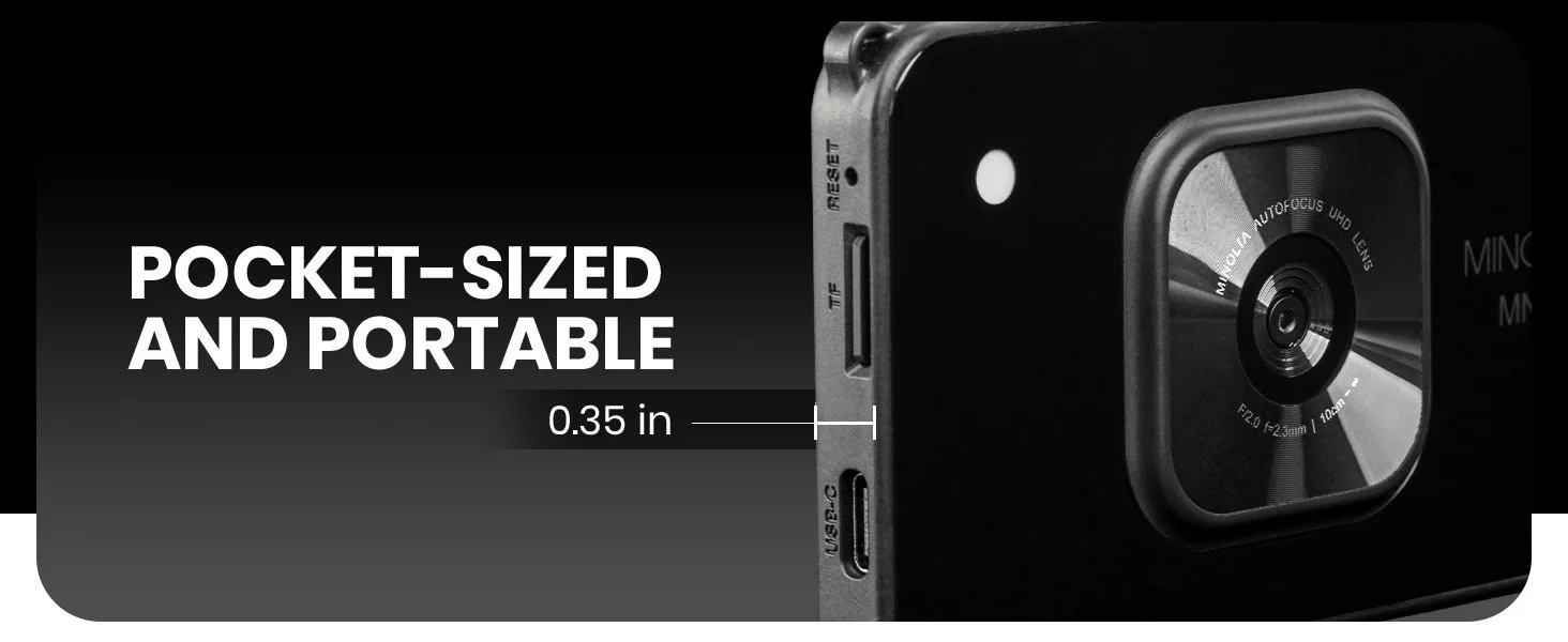 Discover a smarter way to capture life with the Minolta MNS10, a sleek, easy-to-use digital camera built to make every shot shine. Shoot brilliant 48MP photos filled with detail and record vibrant 4K Ultra HD video with clarity that brings your memories to life. A wide-angle lens with Autofocus and Digital Image Stabilization (DIS), AI-powered filters, and a bright 2.9” IPS LCD display ensure your photos and videos look their best in any setting. Compact and lightweight, the MNS10 gives you professional-quality results in a camera that fits effortlessly into your everyday adventures.