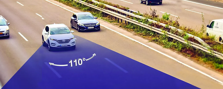 The camera lens captures a 110° wide angle view making sure that you’ll have more coverage of all lanes of the road.