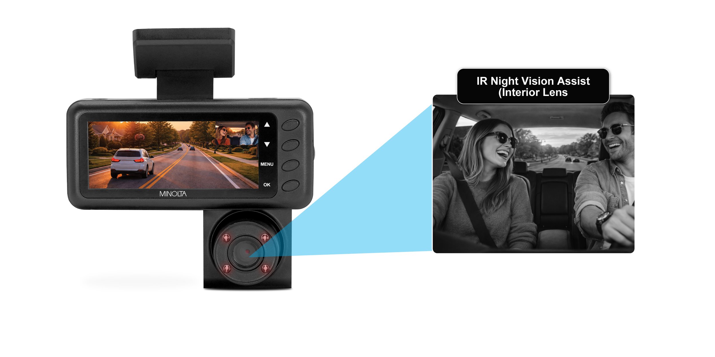 Drive with added confidence using the MNCD340WN 2VIEW Dash Camera with WiFi. Designed to capture both the road ahead and the vehicle interior, this dual-camera system provides dependable documentation for daily commutes, rideshare driving, and extended road trips.