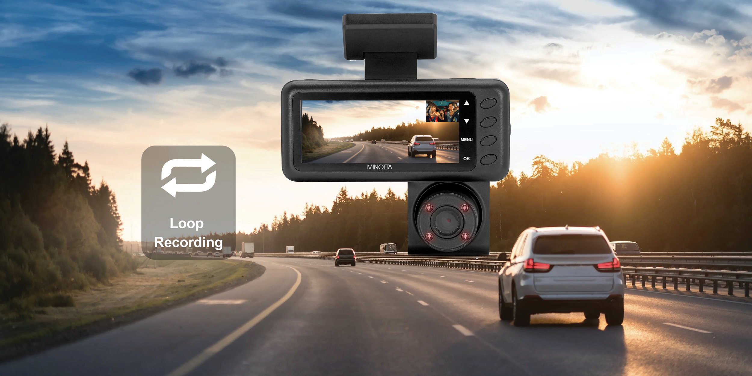 Records a vivid, lifelike record of your road trips in 1080p full high definition. Loop recording overwrites the oldest footage. It allows you to set your recording time from one to five minute loop intervals.